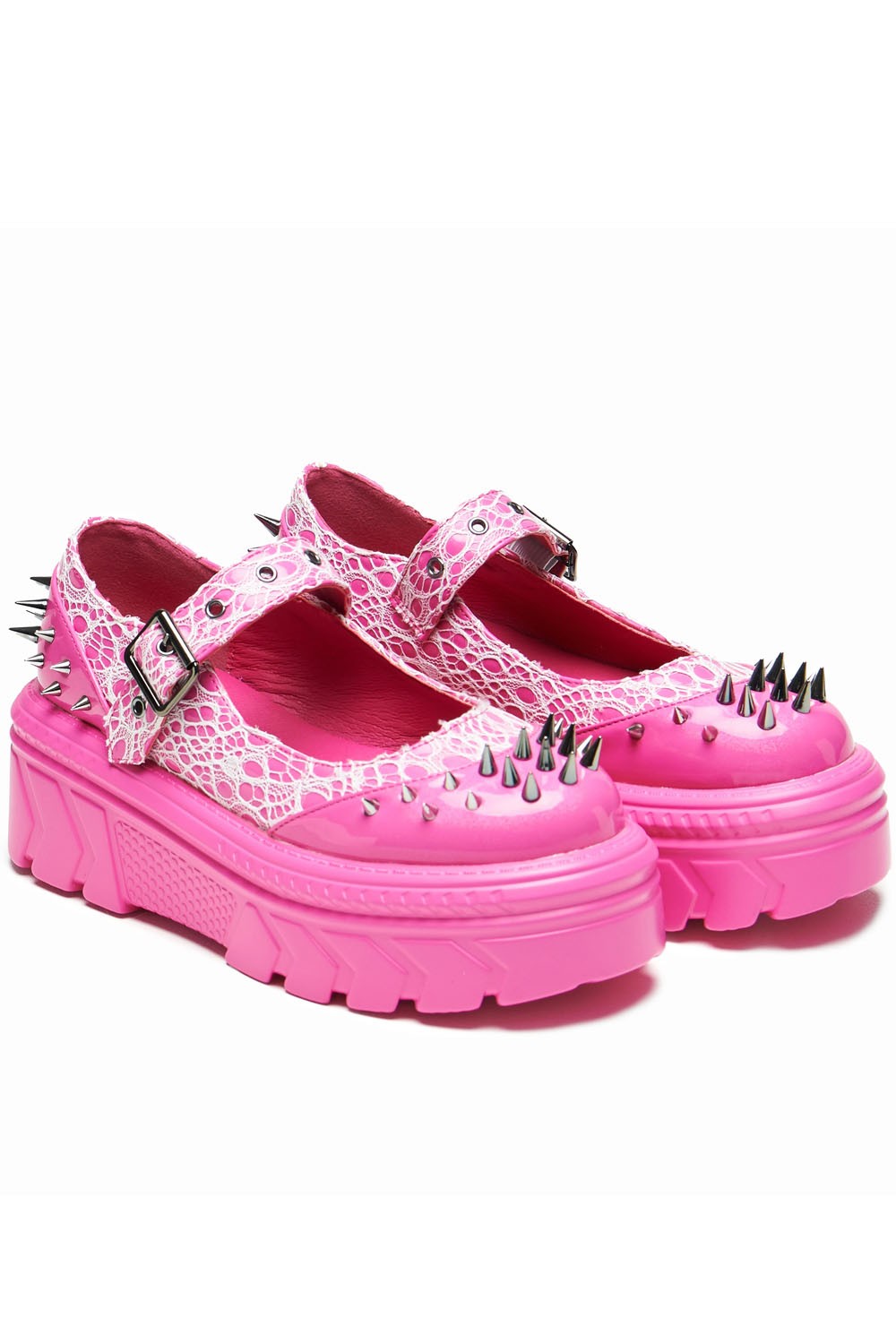 Mary Janes Candyfloss Demon Spiked en Fucsia - Koi Footwear